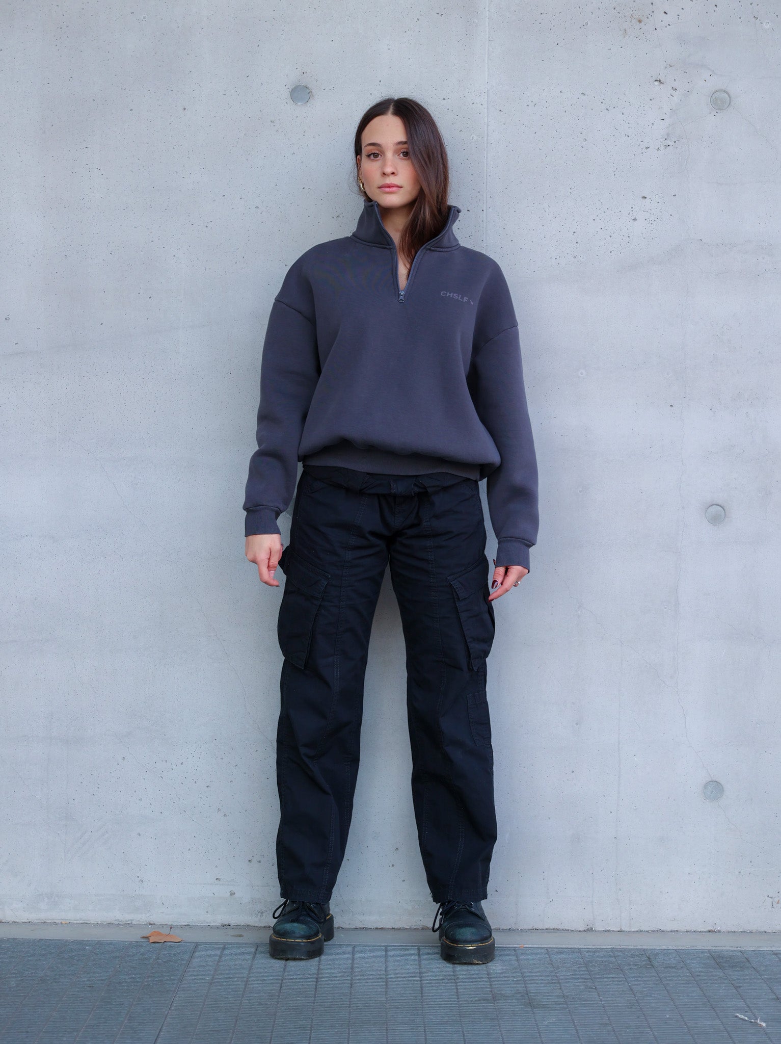 Felpa con cerniera a collo alto presenta il logo abbreviato sul davanti e il logo grafico sul retro laserati.